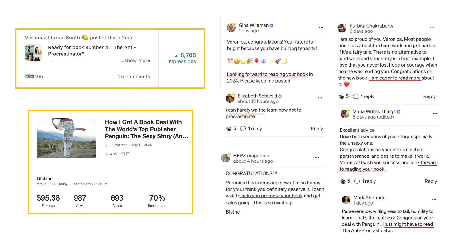 I have published 3 books, 1 self-publishing guide and just signed a publishing deal with Penguin Random House for my new book, “The Anti-Procrastinator.”