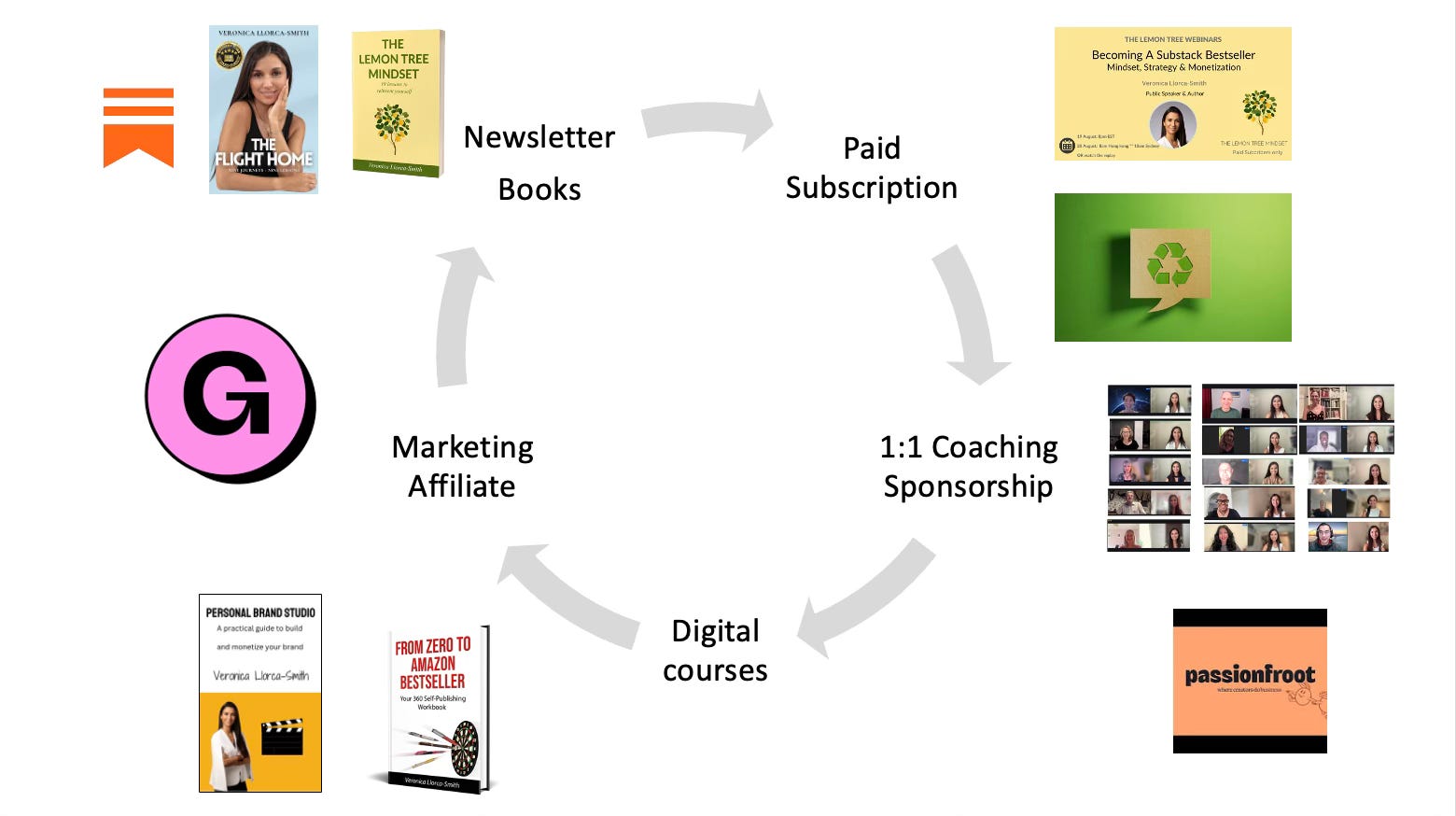 Newsletter → Book sales + Coaching + Affiliate Marketing