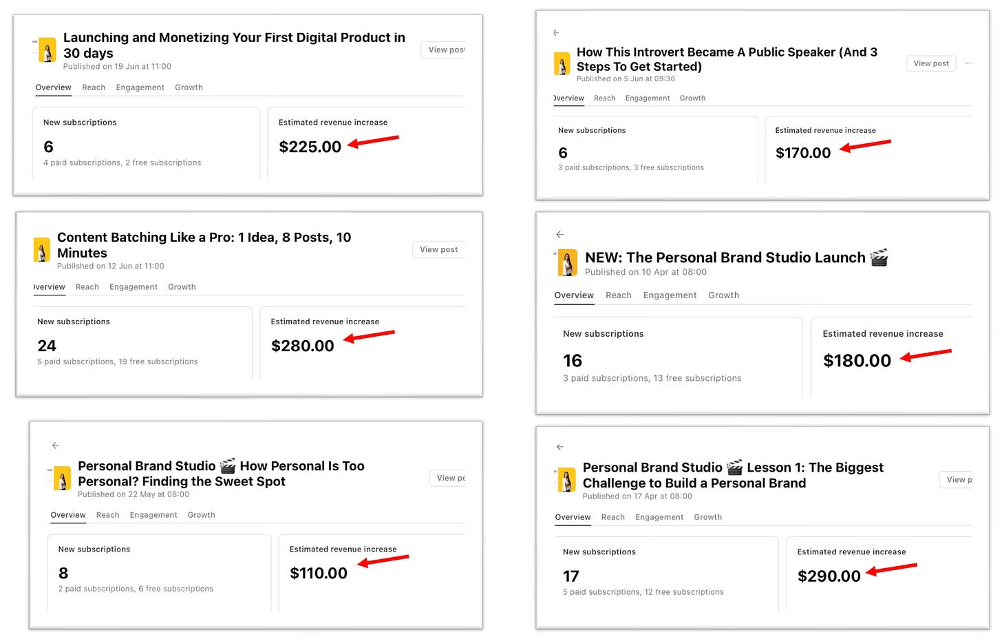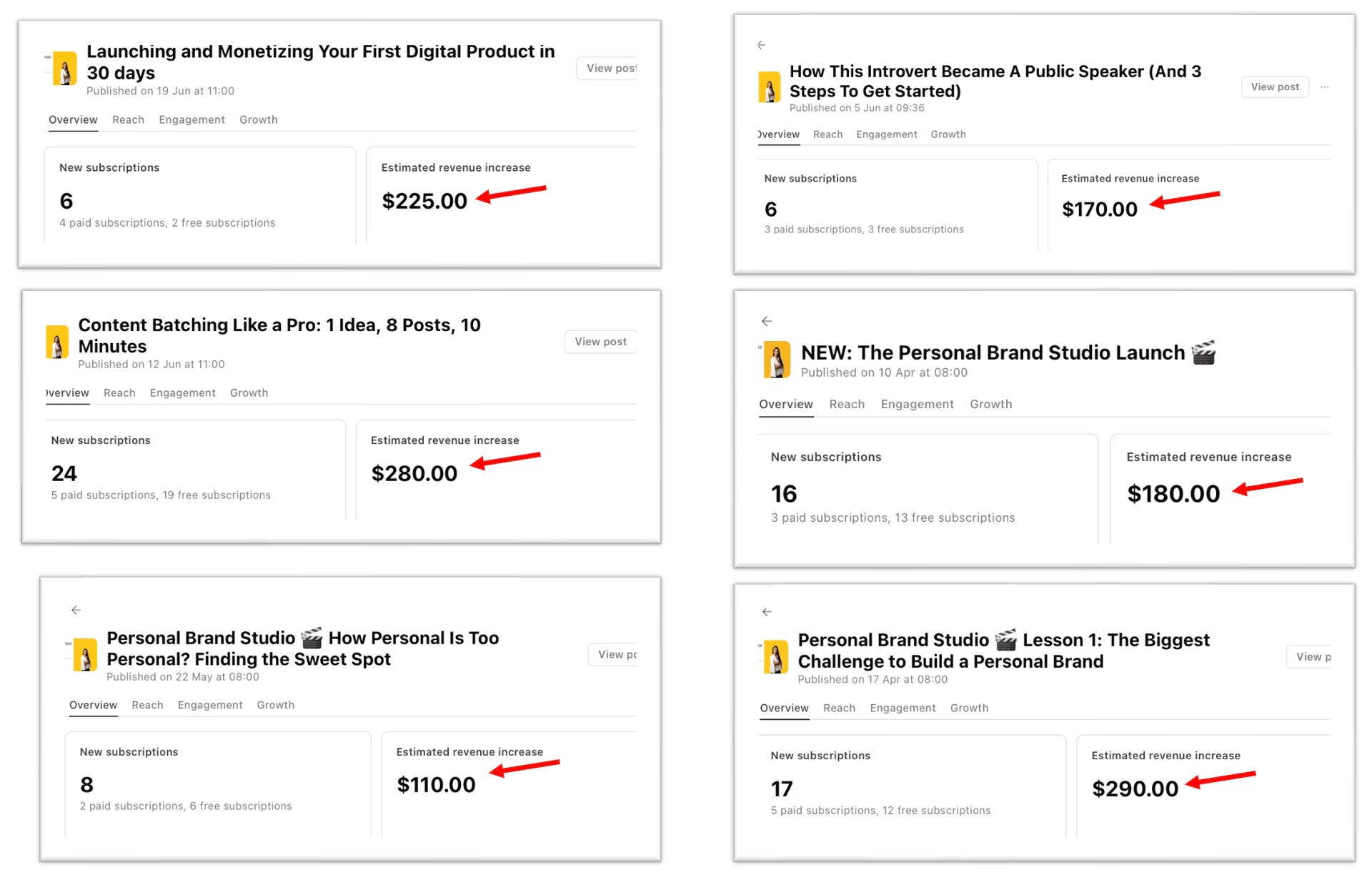 The Personal Brand Studio generated 1,000 US$+ through Substack before it was launched on Gumroad as an ebook. Thatβs the power of serialization.