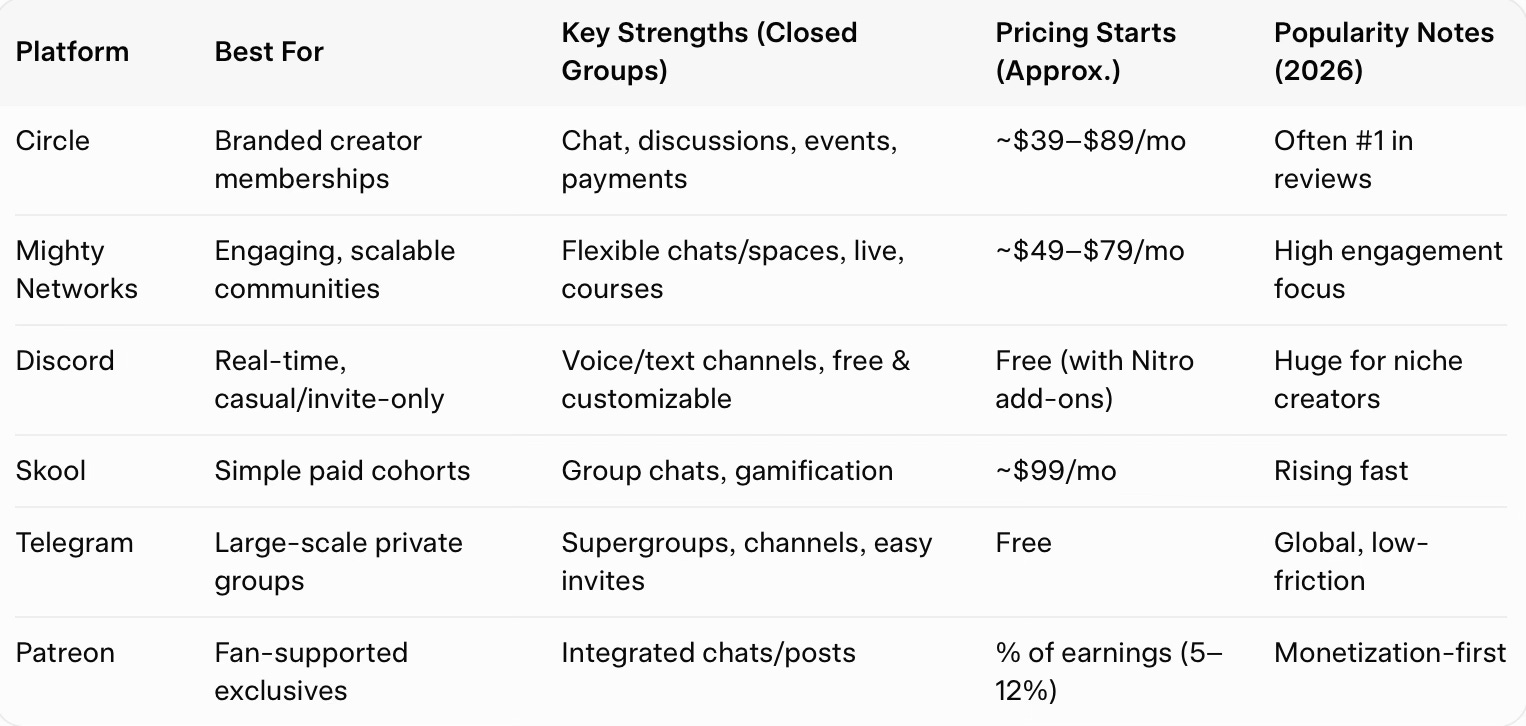 Below are some popular options among creators for you to do your own market research.