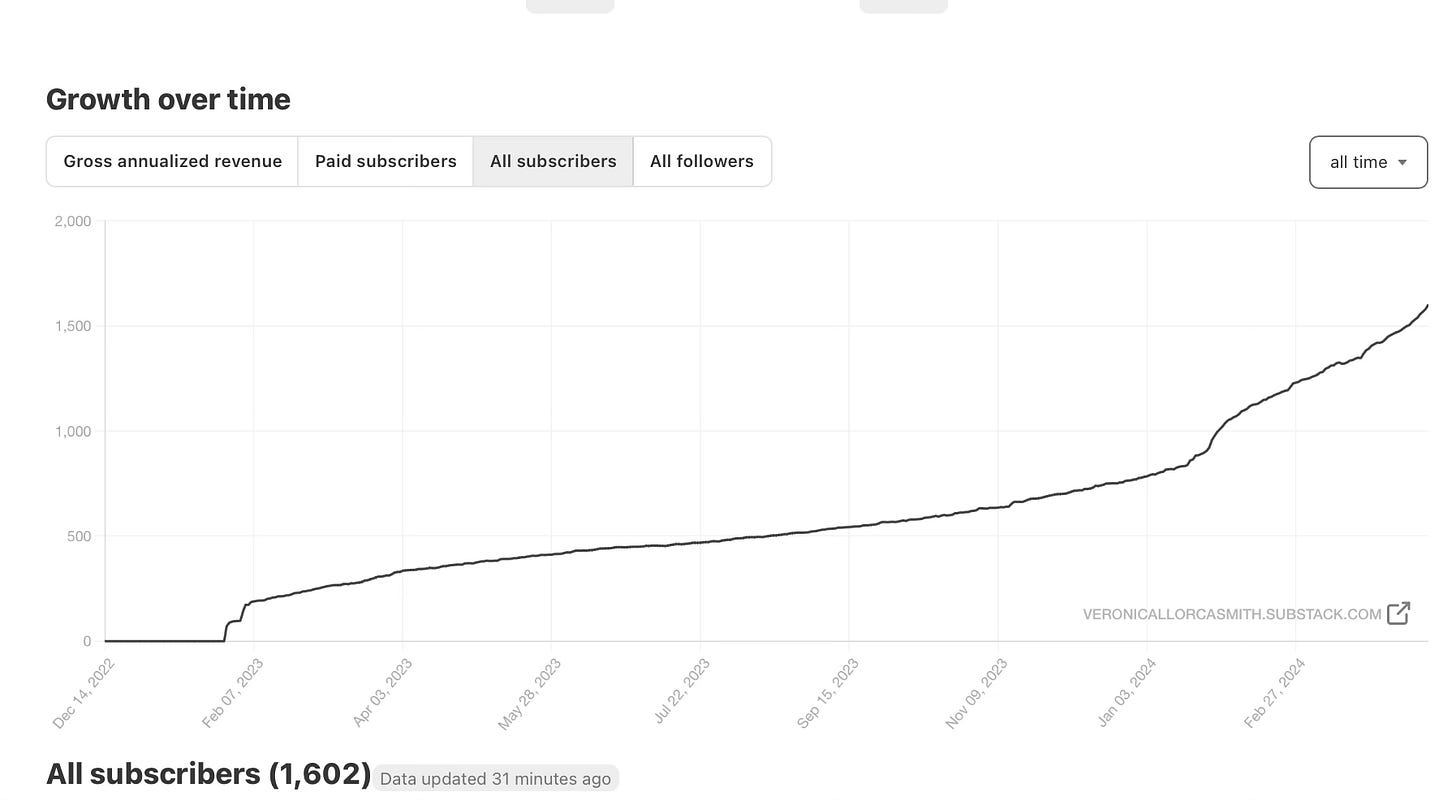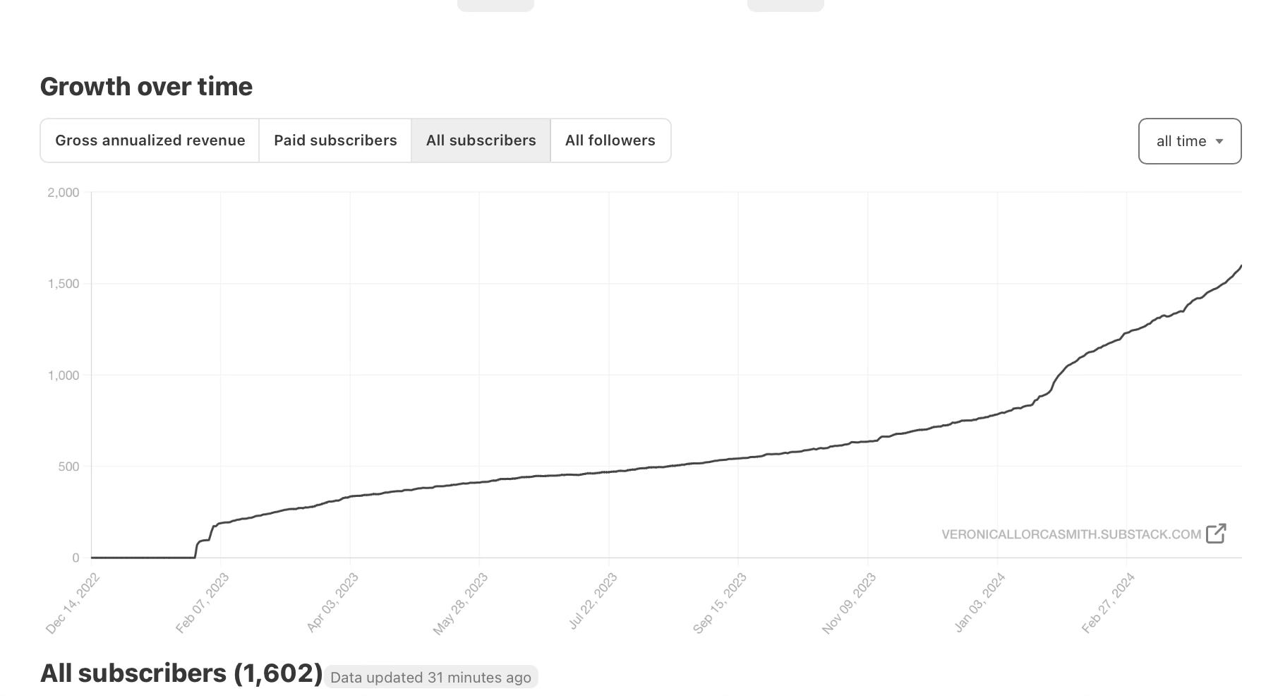Building online has allowed me to accelerate my career as a public speaker, speak on podcasts, sell more books and grow this newsletter faster than the average (just hit 1,600 subscribers today 🎉)